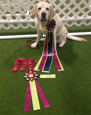 Batescreek Emma took Winners Bitch (WB), Best of Breed (BOB), and Best of Winners (BOW) at the Western Pennsylvania Kennel Assoc. on March 30 th, 2013. Batescreek Emma took Winners Bitch (WB) and Best of Breed, Best of Winners (BOW) at the Erie Kennel Club, Erie, PA on January 28th, 2012. Berryhill Grandriver Crystal took a 3 point major win at Central Ohio Kennel Club in Columbus, Ohio November 20,2011. We are proud to announce she is our newest AKC Champion. Batescreek Emma took an American Bred class win and took American Bred Best Of Breed at Central Ohio Kennel Club In Columbus, Ohio November 20, 2011. Berryhill Grandriver Crystal took Reserve WB at the Butler County Kennel Club on Sunday, September 25, 2011 Berryhill Grandriver Crystal took WB at the Butler County Kennel Club on Saturday, September 24, 2011. Batescreek Emma took Reserve WB at the Butler County Kennel Club on Saturday, September 24, 2011. Sugarbrush Kennel Club, 8-27-11, Batescreek Emma took WB, BOW out of the 12-18 month class for a 3 point major win. Western Reserve Kennel Club, 8-28-11, Batescreek Emma took WB, BOW, BOS out of the 12-18 month class for a 3 point major win Western Reserve Kennal Club, 12-19-10, Batescreek Emma, Judge Clay Coady Class, 3 point major, 6-9 Puppy Class Erie Kennel Club, 1-29-11, Batescreek Emma, Judge Walter Sommerfelt, Winners Bitch, Best of Opposite, 6-9 Puppy Class. Toledo Kennel Club, 6/3/06 Liberty Creek Behr To Dare All “Behr” took Winners, BOS, BOW Miami Valley Labrador Specialty, 5/12/07, Liberty Creek Behr To Dare All “Behr” took a Class Specialty Win, Judge Kendall Herr, Dickendall Labradors ~*~*~*~ Ashtabula Kennel Club, 7/14/07, Grand River Berryhill "Crystal" took Best of Breed - Best of Opposite, Judge Rita Bell Agathon Kennel Club, 11/25/07, Grand River Berryhill "Crystal" took BOW, BOS, Judge Betsy Yates. Western Pennsylvania Kennel Association, 3/30/08, Grand River Berryhill "Crystal" took Best of Breed - Best of Opposite Agathon Kennel Club, 11/22/08 Grand River Berryhill "Crystal", Judge Mrs. Anne Savory Bolus, took 1/W/OS Agathon Kennel Club, 11/23/08 Grand River Berryhill "Crystal",